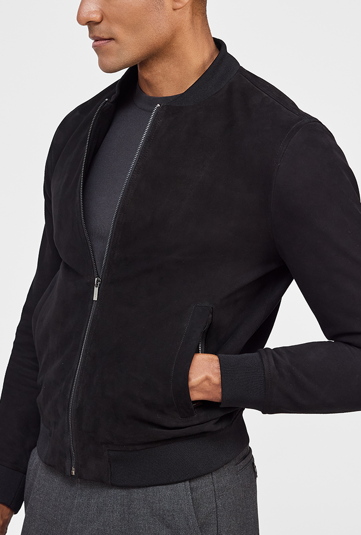 Professional suede cleaning is recommended to maintain the jacket's texture and appearance. Avoid exposure to excessive moisture or direct sunlight to preserve its color and quality.
